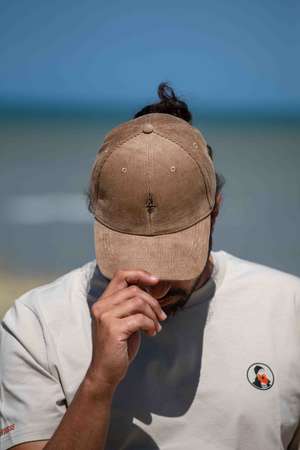 Casquette camel écoresponsable en velours côtelé 6 pans unisexe.