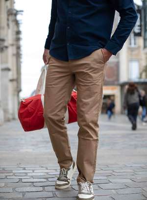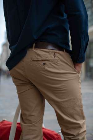 - Pantalon chino Camel écoresponsable. Matière légèrement stretch pour plus d'aisance. En coton biologique plus écologique et plus éthique.