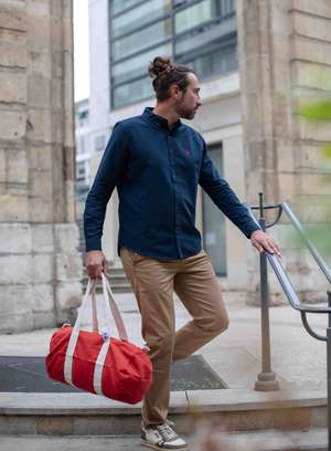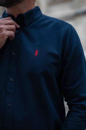 Chemise en coton marine, tissage Oxford.