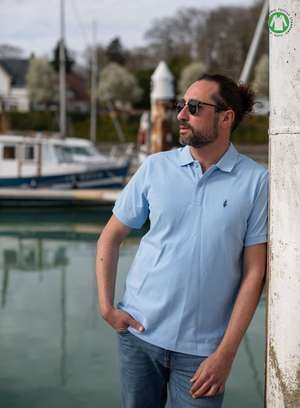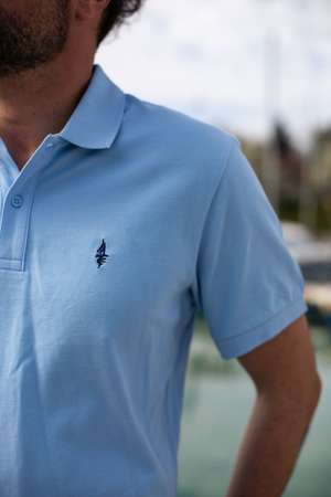 Polo bleu ciel unisexe, coupe classique.