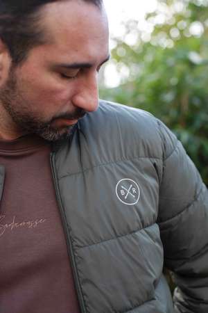 Blouson kaki matelassé écoresponsable à col Teddy unisexe, coupe classique.
