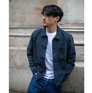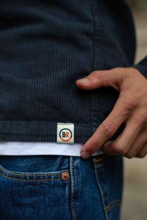 Veste écoresponsable en velours côtelé couleur marine, coupe classique.