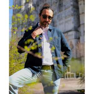 Veste worker homme navy, effet délavé tendance vintage, coupe classique.