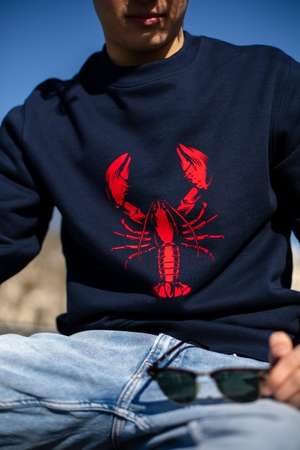 Sweat-shirt marine navy. Coupe classique, coton Bio et intérieur en molleton brossé. Visuel Homard touché velours.