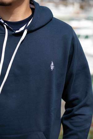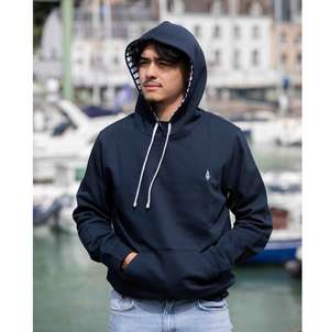 Sweat à capuche contrastée unisexe marine, coupe classique.