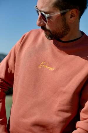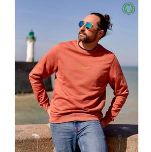 L'indispensable sweat-shirt unisexe terracotta à col rond souple et doux avec broderie torse, coupe classique.