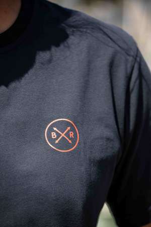 T-shirt marine fabriqué à Lille dans le Nord. Coupe unisexe simple et contemporaine, col rond, double surpiqûre et coton Bio brossé carbone pour un toucher ultra-doux.
