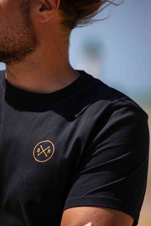 T-shirt noir fabriqué à Lille dans le Nord. Coupe simple et contemporaine, col rond, double surpiqûre et coton Bio brossé carbone pour un toucher ultra-doux.