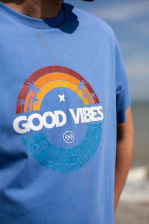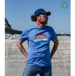 T-shirt iconique unisexe bleu pale, coupe classique.
