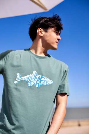 T-shirt iconique unisexe vert pale, coupe classique.