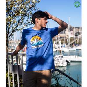 T-shirt iconique unisexe bleu pale, coupe classique.